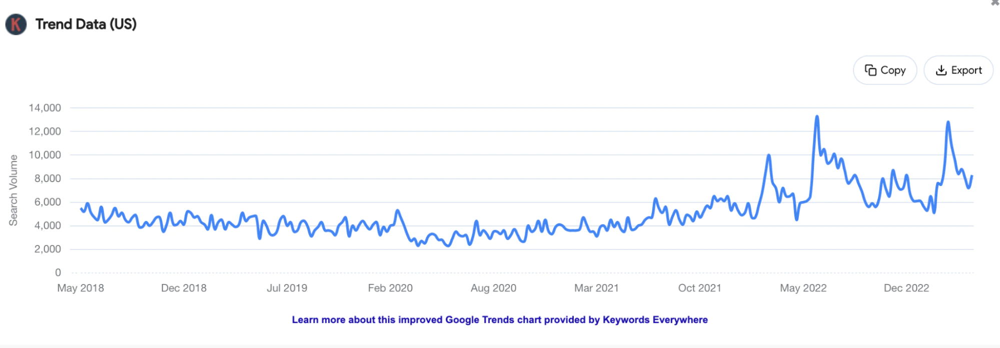 来自 Keywords Everywhere 的趋势数据显示以下搜索量:
