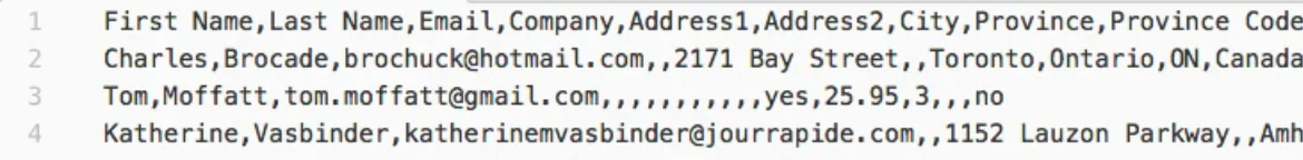 采用 UTF-8 编码的 CSV 文件是唯一一种可用于导入 Shopify 或从 Shopify 导出的文件格式。